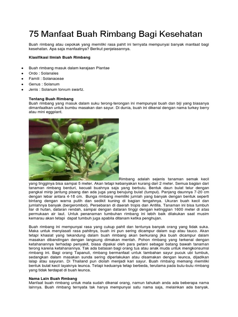 Mengkonsumsi rimbang dengan teratur maka bisa mencegah terjadinya katarak dan mengurangi tingkat keparahan dari katarak tersebut. Manfaat Buah Takokak Rimbang untuk Kesehatan Mata Buah Takokak rimbang terong pipit merupakan jenis tanaman yang cukup gampang tumbuh dimana saja. Mengobati gangguan menstruasi seperti tidak haid.
