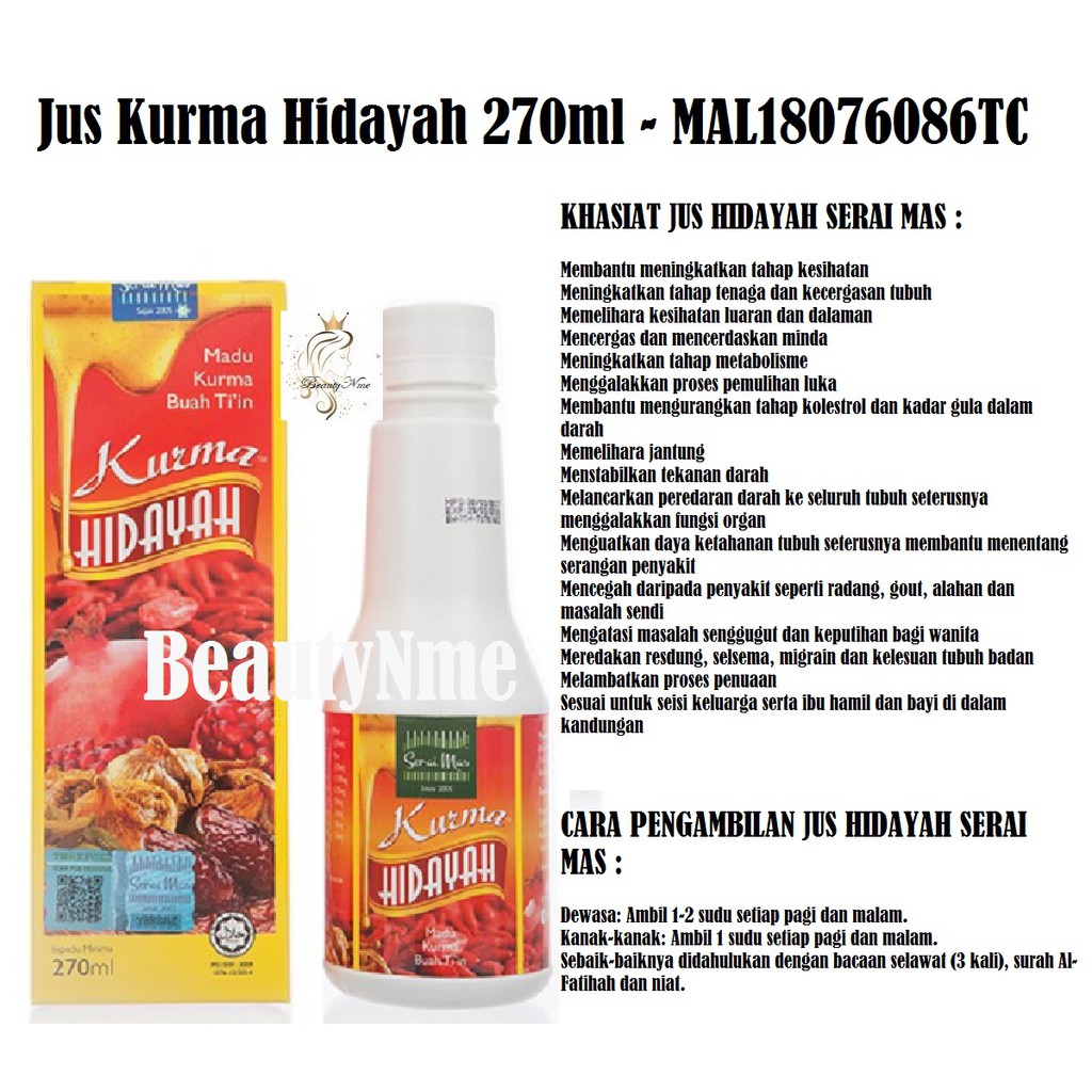 100 Original Serai Mas Jus Kurma Hidayah 270ml Shopee Malaysia