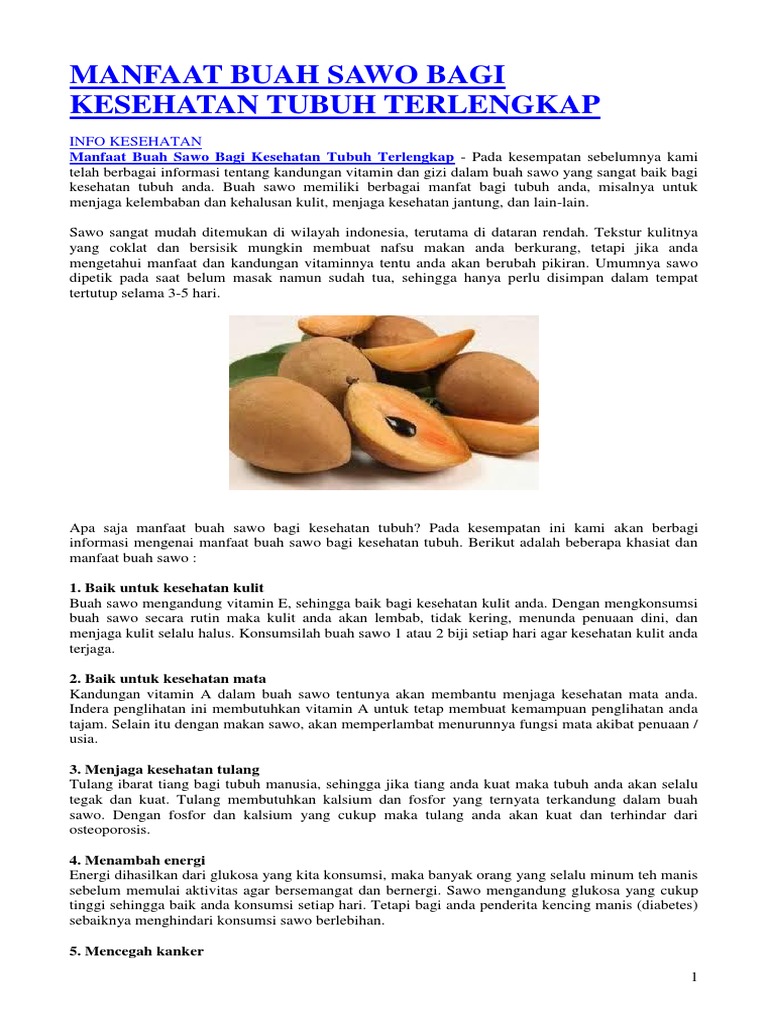 Buah ini memiliki rasa yang cukup khas dengan kulit yang tipis. Membantu Menurunkan Berat Badan. 10 Manfaat Buah Sawo untuk Kesehatan Tubuh mulai mengobati gangguan lambung hingga batuk pilek TRIBUNKALTIMCO - Sudah menjadi rahasia umum buah sawo memiliki banyak manfaat bagi kesehatan dan.