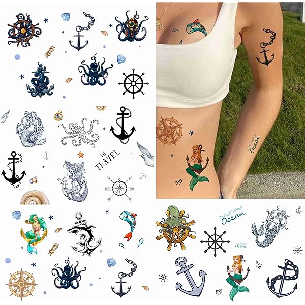 Amazon Com Tattoonova 24 Sheets Temporary Tattoo Women Adults Octopus Party Favors Mermaid Body Face Sleeve Anchors Fake Tattoos Beauty Personal Care